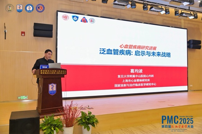 受聘仪式后,葛均波院士作泛血管主题报告,系统阐释了“以血管为中心”的多学科整合诊疗模式,分享了团队在泛血管疾病精准评估、技术创新、跨学科协作等方面的最新成果,并针对区域医疗机构泛血管学科的建设路径提出了专业化建议。