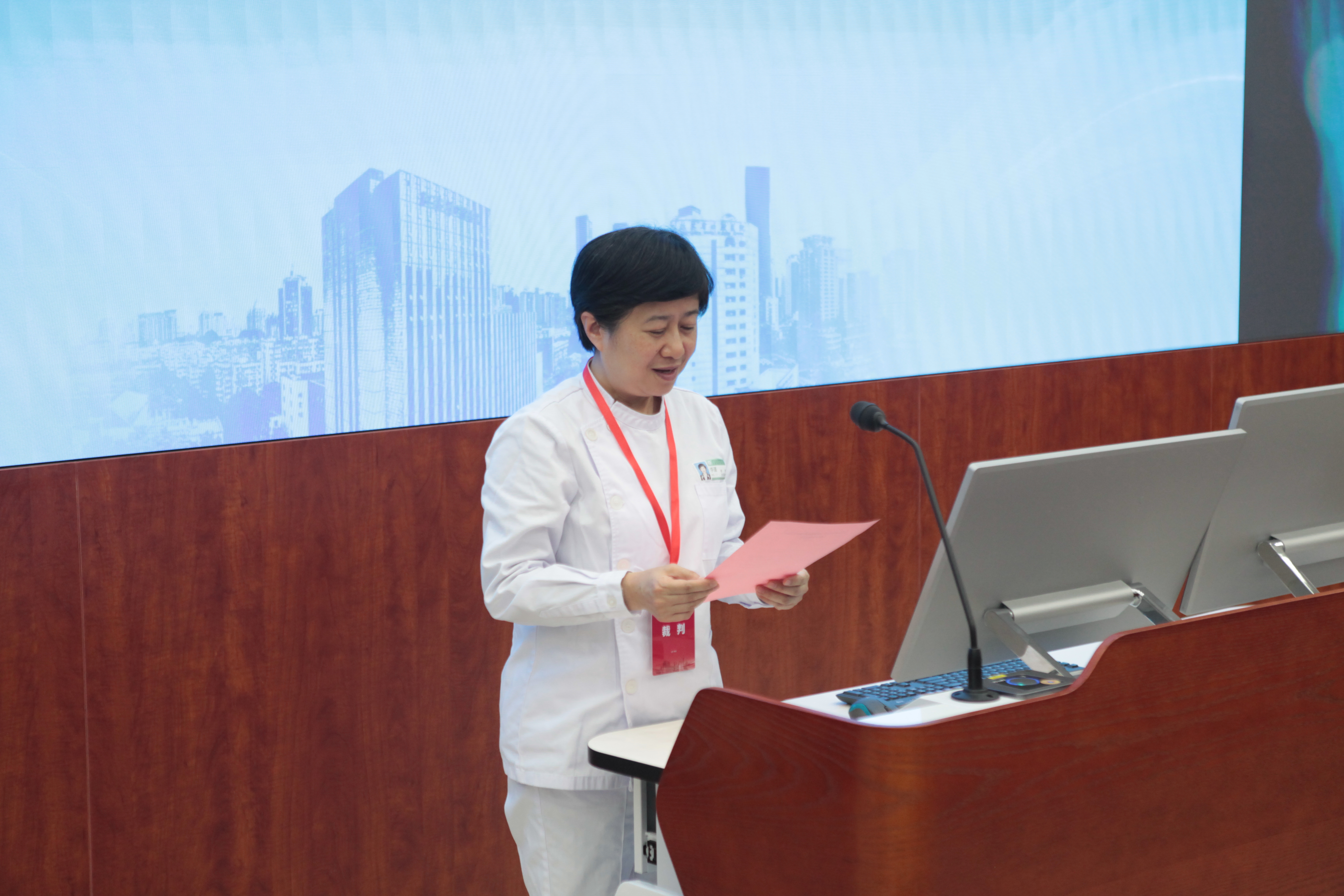 附属口腔医院李谨教授代表全体裁判员庄严宣读竞赛承诺书。来自南京大学医学院口腔医学院的马致远同学作为选手代表发言。