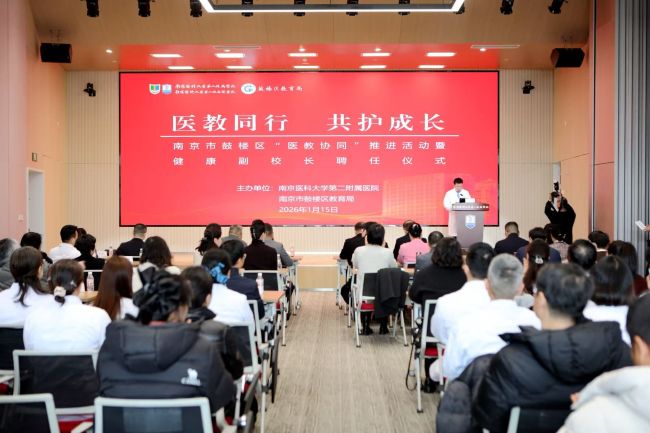 1月15日上午,为继续扩大优质医疗资源与校园教育深度融合的覆盖面,提升青少年健康服务品质,我校第二附属医院与南京市鼓楼区教育局“医教协同”推进活动暨健康副校长聘任仪式在医院至善报告厅举行。